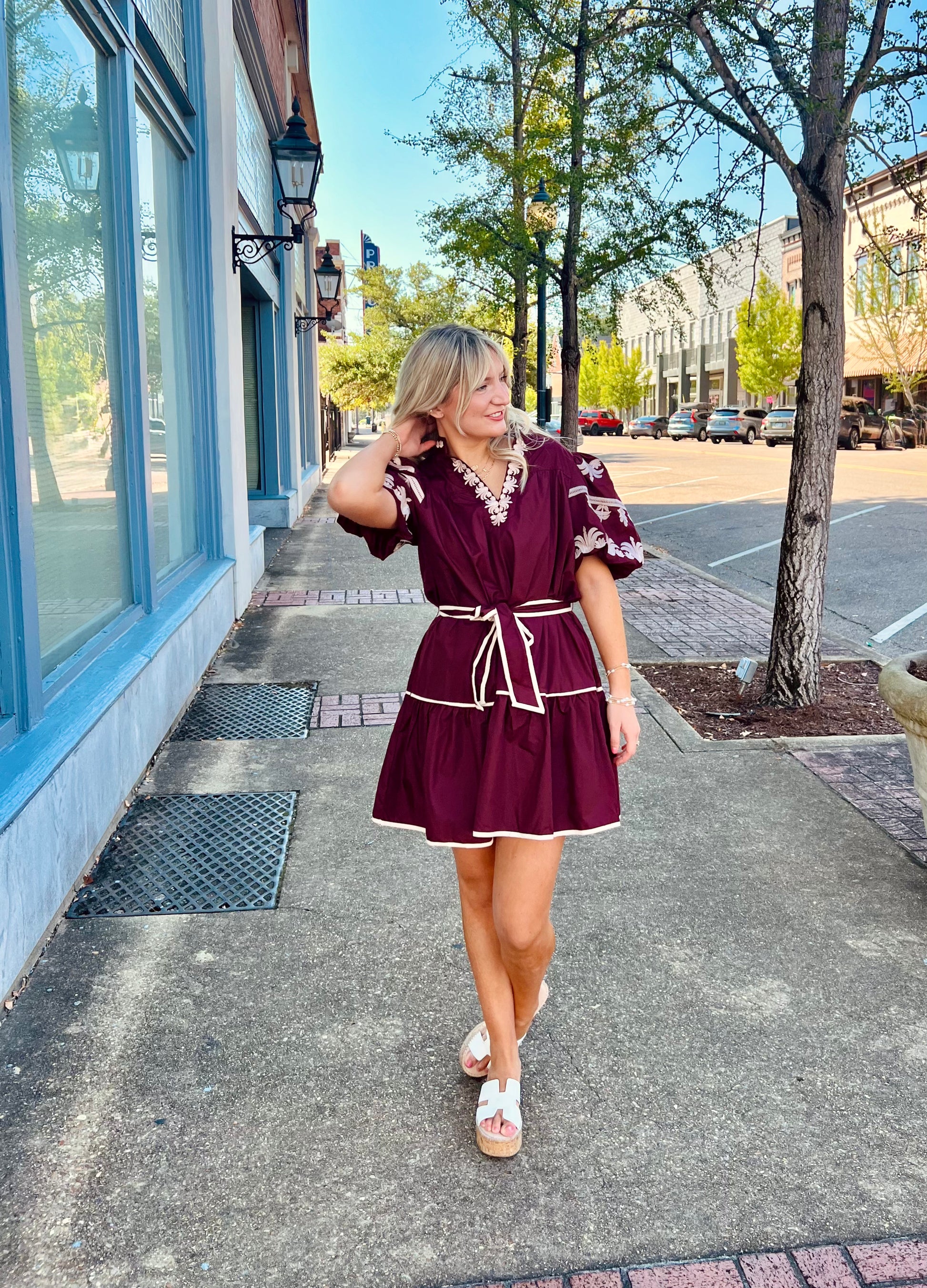 maroon mini embroidery dress